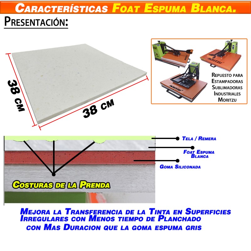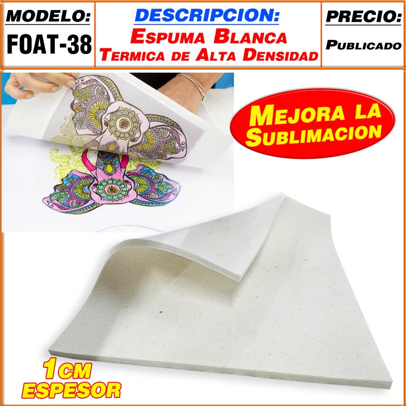 FOAT ESPUMA BLANCO PARA ESTAMPADORAS DE SUBLIMACIÓN 38X38cm ESPESOR 10mm