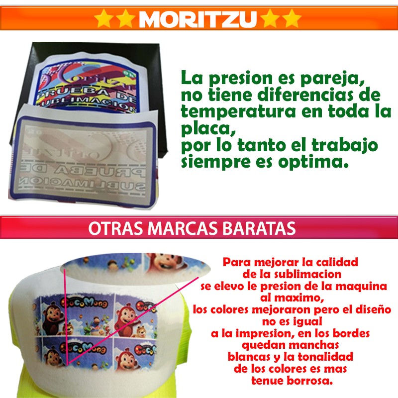 • SUBLIMACIÓN 100% DE SUPERFICIE, no deja rayas como las resistencias de alambre