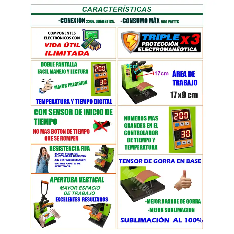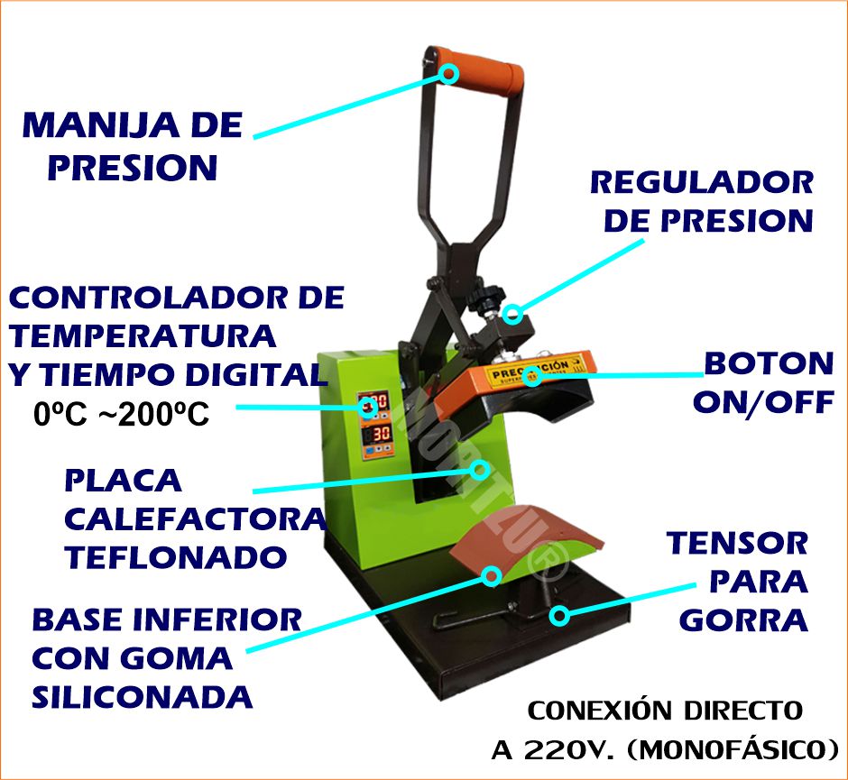 • SUJETADOR DE GORRA , para mantenerlo fijo en la plancha para que no se mueva de lugar