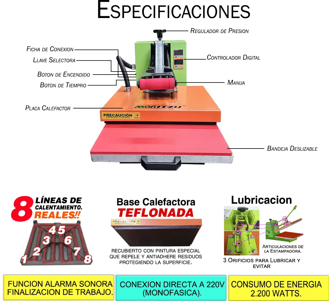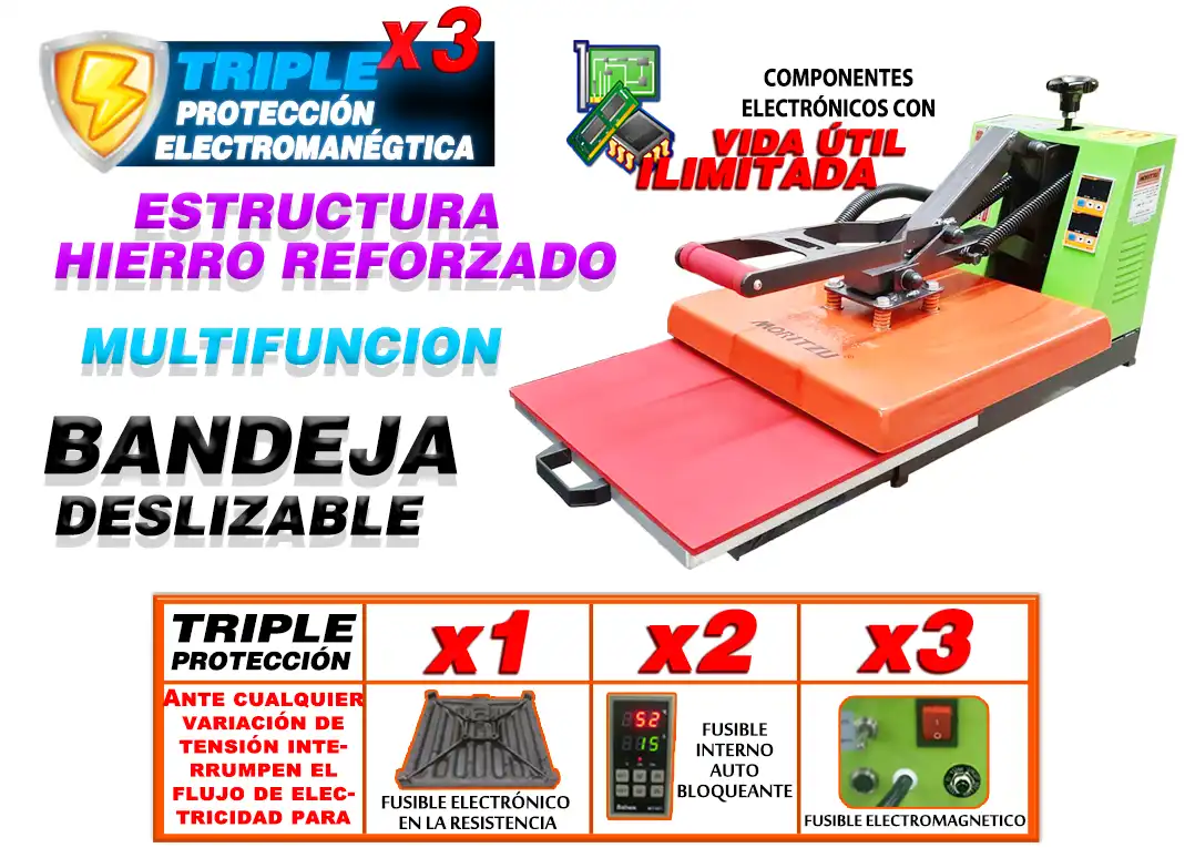 MZ-44DMSL, Estampadora Multifuncion Industrial Sublimadora de 38X38CM