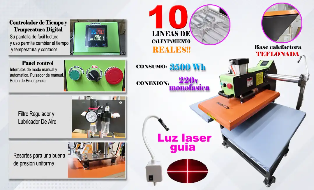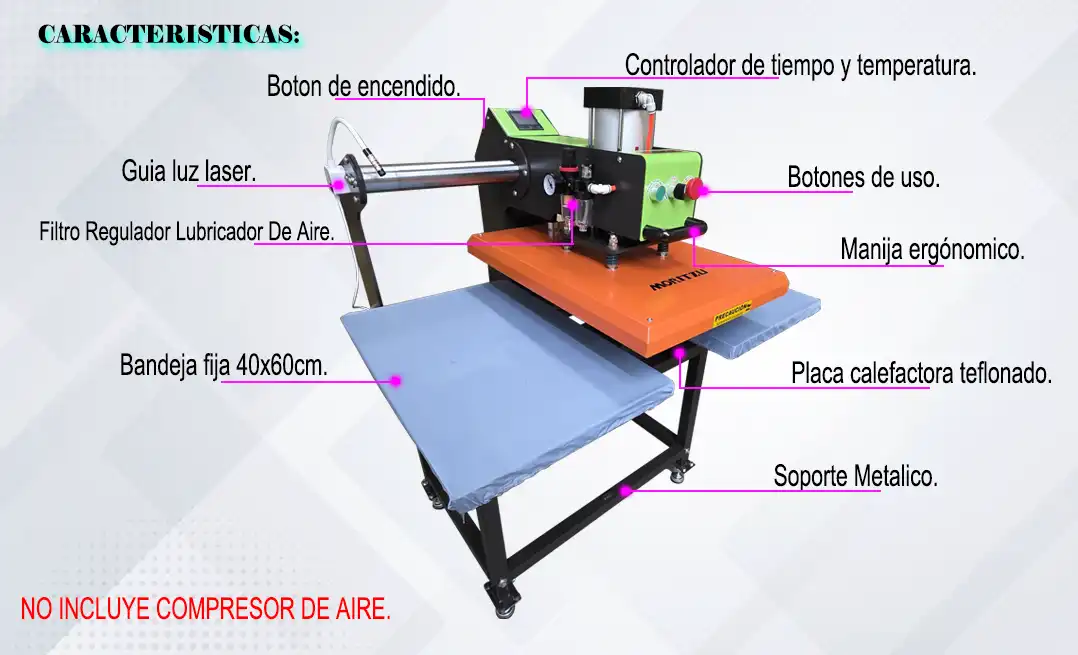 MZ-46OPNE, Estampadora Sublimadora Industrial 40X60CM Doble Bandeja deslizable Horizontal Neumatica