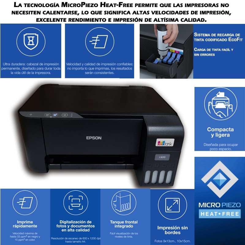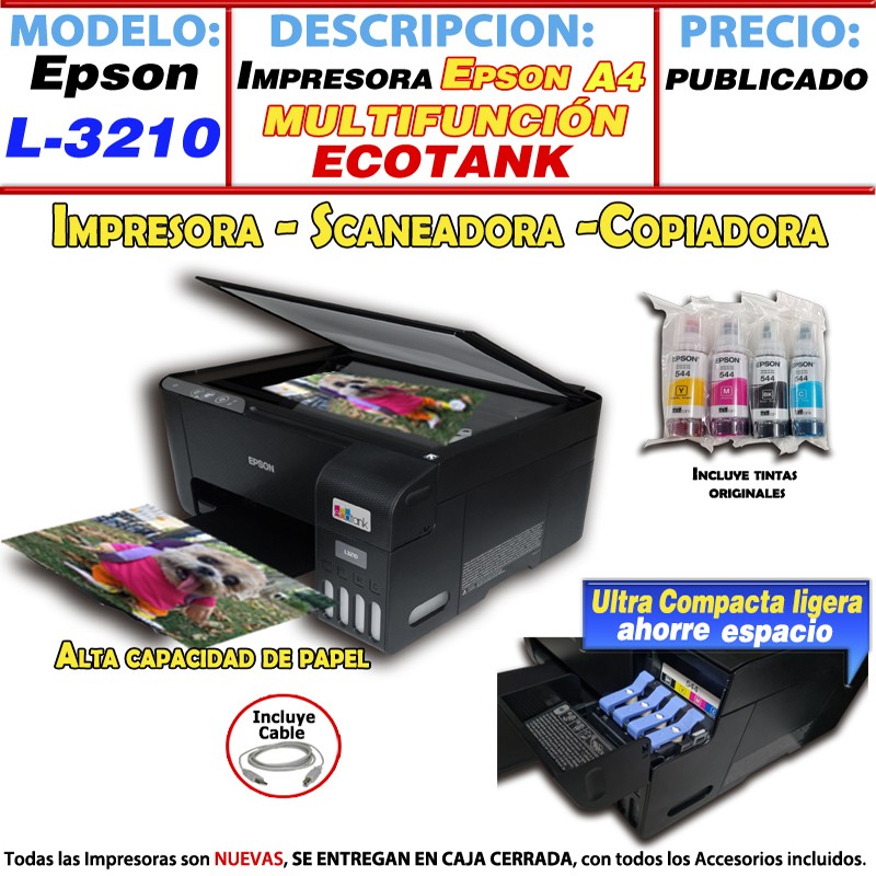 IMPRESORA ECOTANK EPSON L3210 CON TINTAS DE REGALO