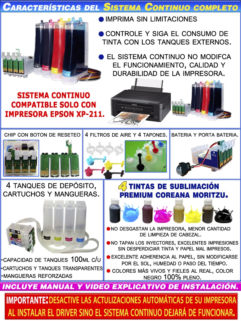 -El sistema continuo no modifica el funcionamiento, calidad y durabilidad de la impresora.
