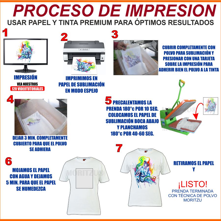 - Usar papel de sublimación Premium Moritzu.