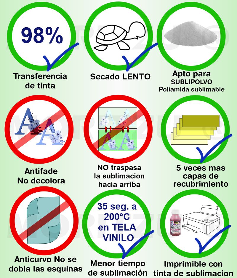 • Apto para utilizar SUBLIPOLVO , POLVO PARA SUBLIMAR SOBRE TELA ALGODON ,