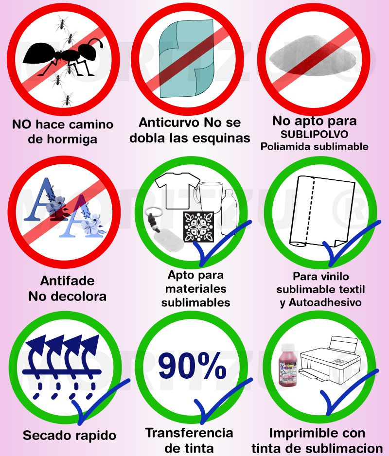 - No apto para sublipolvo ( solo premium moritzu es apto )
