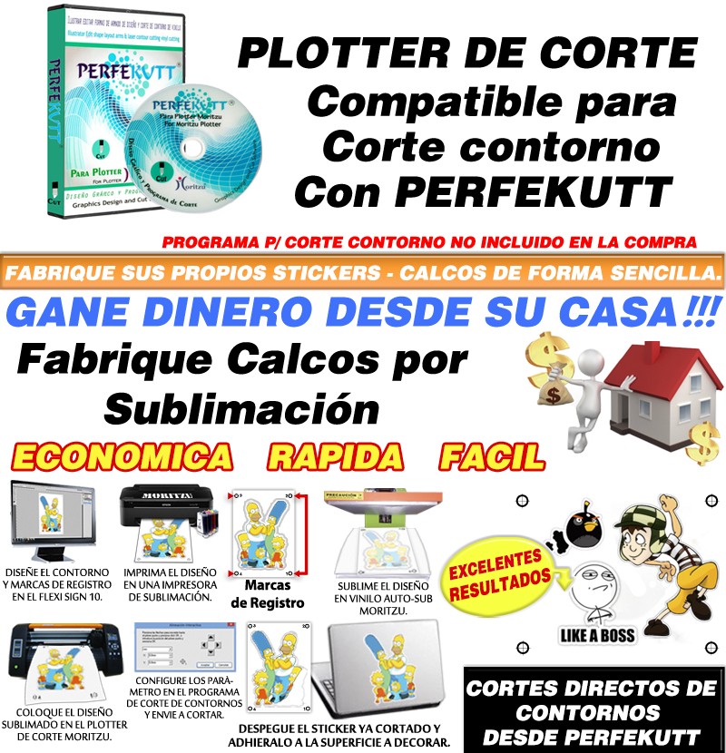 PRESENTACIÓN: Precio por Una (1) maquina Plotter de Corte COMPATIBLE CON EL PROGRAMA DE CORTE CONTORNOS *PERFEKUTT* (el programa no esta incluido en la compra) ELEMENTOS INCLUIDOS