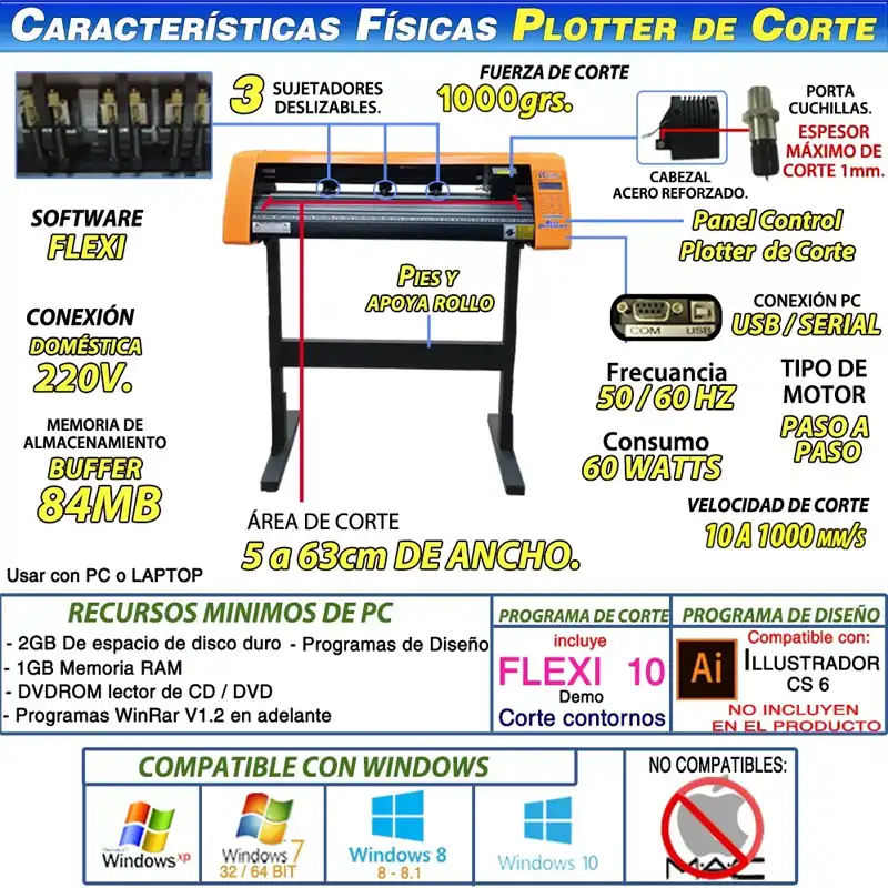 • -Para el funcionamiento del plotter de corte se debe conectar a una PC o laptop.