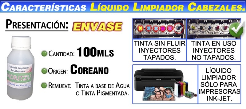 LIQUIDO LIMPIA CABEZAL PARA TINTA DE SUBLIMACIÓN: CARACTERÍSTICAS:
