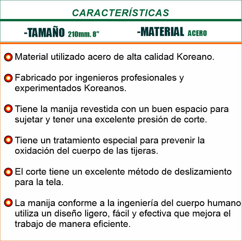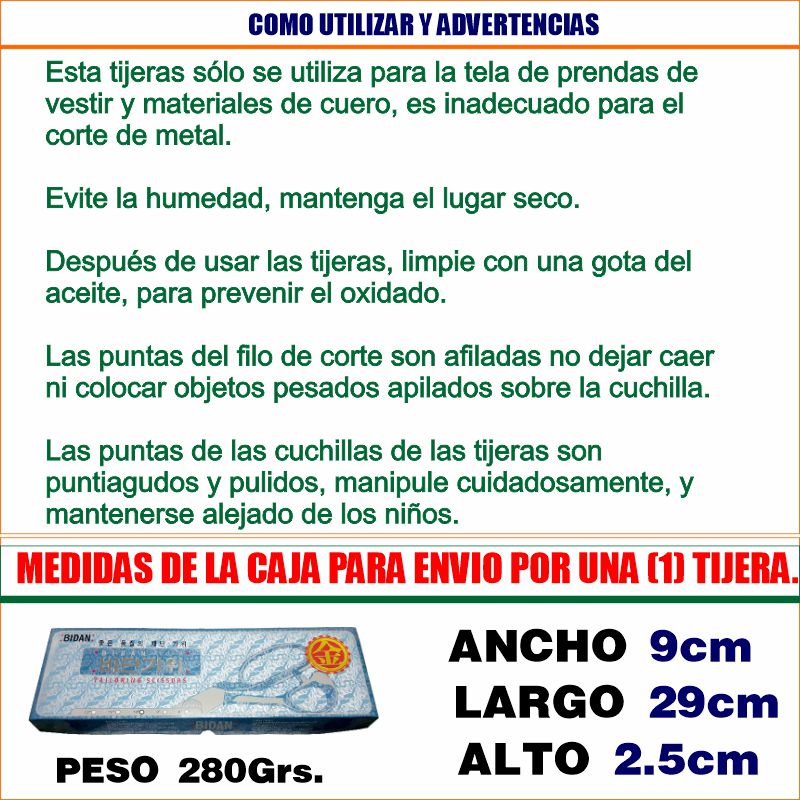 1. ESTA TIJERA SOLO SE UTILIZA PARA LA TELA DE PRENDAS DE VESTIR Y MATERIALES DE CUERO, ES INADECUADO PARA EL CORTE DE METALES