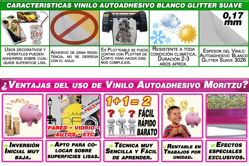 AUTOSUB0026, Vinilo Autoadhesivo Blanco Sublimable Glitter Suave de 60cm de Ancho