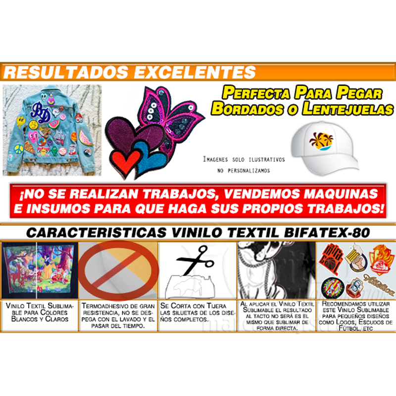 LAMINA DOBLE FAZ , BIFAZ - PEGAMENTO TEXTIL EN LÁMINA  DE 100 MICRONES Uso:  Para sublimar  –  Pegar foil – Pegar glitter en polvo - Pegar parches bordados MODELO: BIFATEX 100  ancho de 50cm CARACTERÍSTICAS: -APTO PARA SUBLIMACIÓN EN TELA CLARA -PUEDE PERSONALIZAR CUALQUIER PRENDA -PUEDE PEGAR BORDADOS PARCHE -50CM DE ANCHO -CORTES CON TIJERA -RESISTENCIA A LOS LAVADOS -APTO PARA PEGADO DE FOIL, SUBLIMAR, BORDADOS EN TODO TIPO DE TELA -POTENTE ADHESIVO TÉRMICO PARA ADHERIR PEGAMENTO AL BORDADO PEGAR A 160°C 5 seg. PARA PEGAR SOBRE LA PRENDA PRECALENTAR LA TELA Y PEGAR DURANTE 160°C 15seg. ESTAMPAR EL VINILO A 150°c x 15seg. aprox. Y LUEGO PUEDE ADHERIR FOIL, CELOFAN U OTRO PRODUCTO. PARA SUBLIMAR Y ESTAMPAR EN 180°c x 180 A 60seg. GRADO CON PAPEL DE SUBLIMACIÓN PREMIUM , RETIRAR EL PAPEL HUMEDECIÉNDOLO APROX 5 MINUTOS.   **** NO REALIZAMOS TRABAJOS****