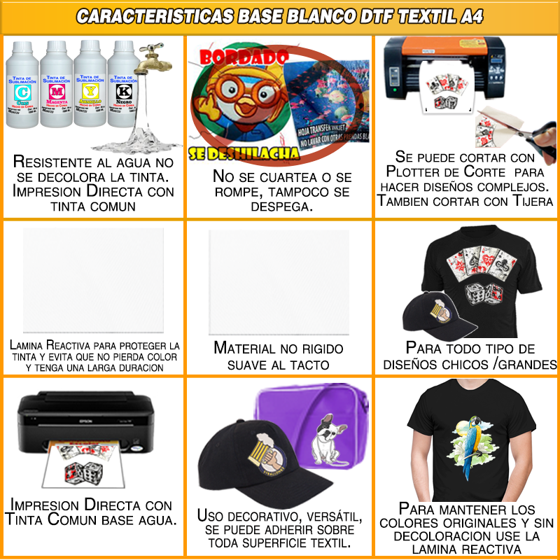 DTF BASE BLANCA PARA PRENDA TELA OSCURA. (Y PUEDE USAR EN PRENDA BLANCA)