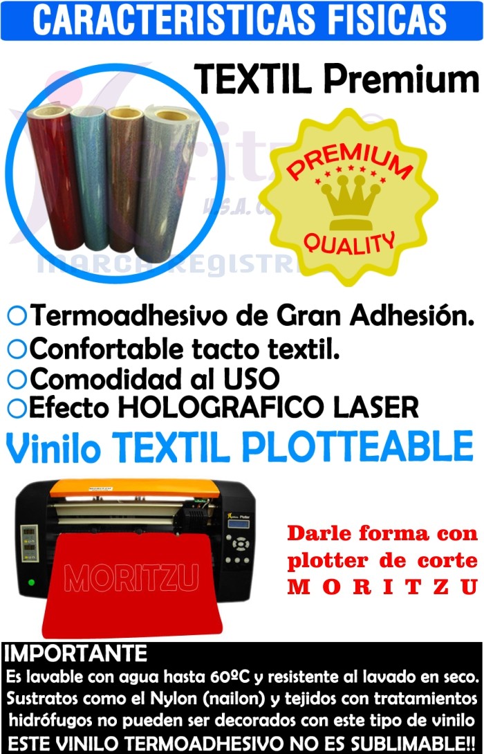 * NO SE RESQUEBRAJA COMO VINILOS CHINOS *FÁCIL DEPILADO Y CORTE PERFECTOS *APTO PARA VECTORES CHICOS *50CM DE ANCHO DE VINILO *POTENTE ADHESIVO TÉRMICO CARACTERÍSTICAS: