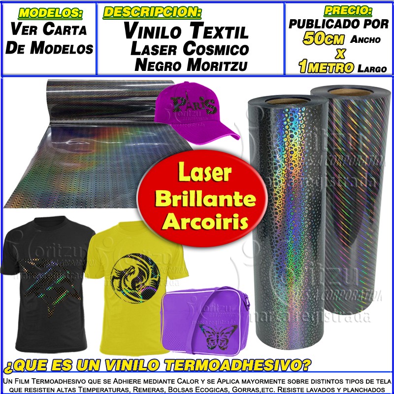 Vinilo Textil Laser Cósmico ArcoIris Negro