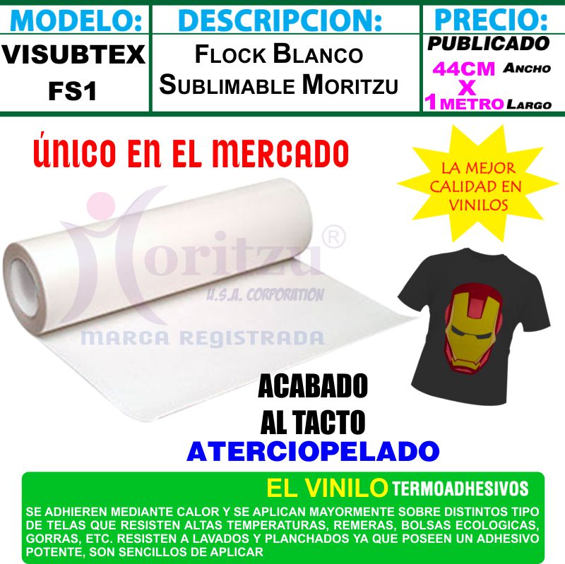 FLOCK BLANCO SUBLIMABLE CON RESPALDO COMÚN, ACABADO MAS ATERCIOPELADO MODELO: VISUBTEX-FS1